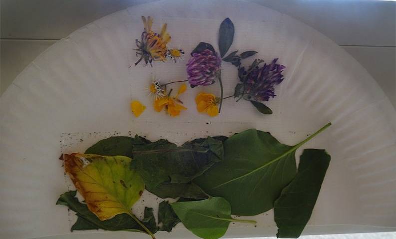 1) Un atelier dans lequel il faut retrouver dans la cour 3 plantes dont on a pris des échantillons (1 boite de 6 oeufs dans laquelle on a mis 3 échantillons et qu'il faut compléter en cueillant)