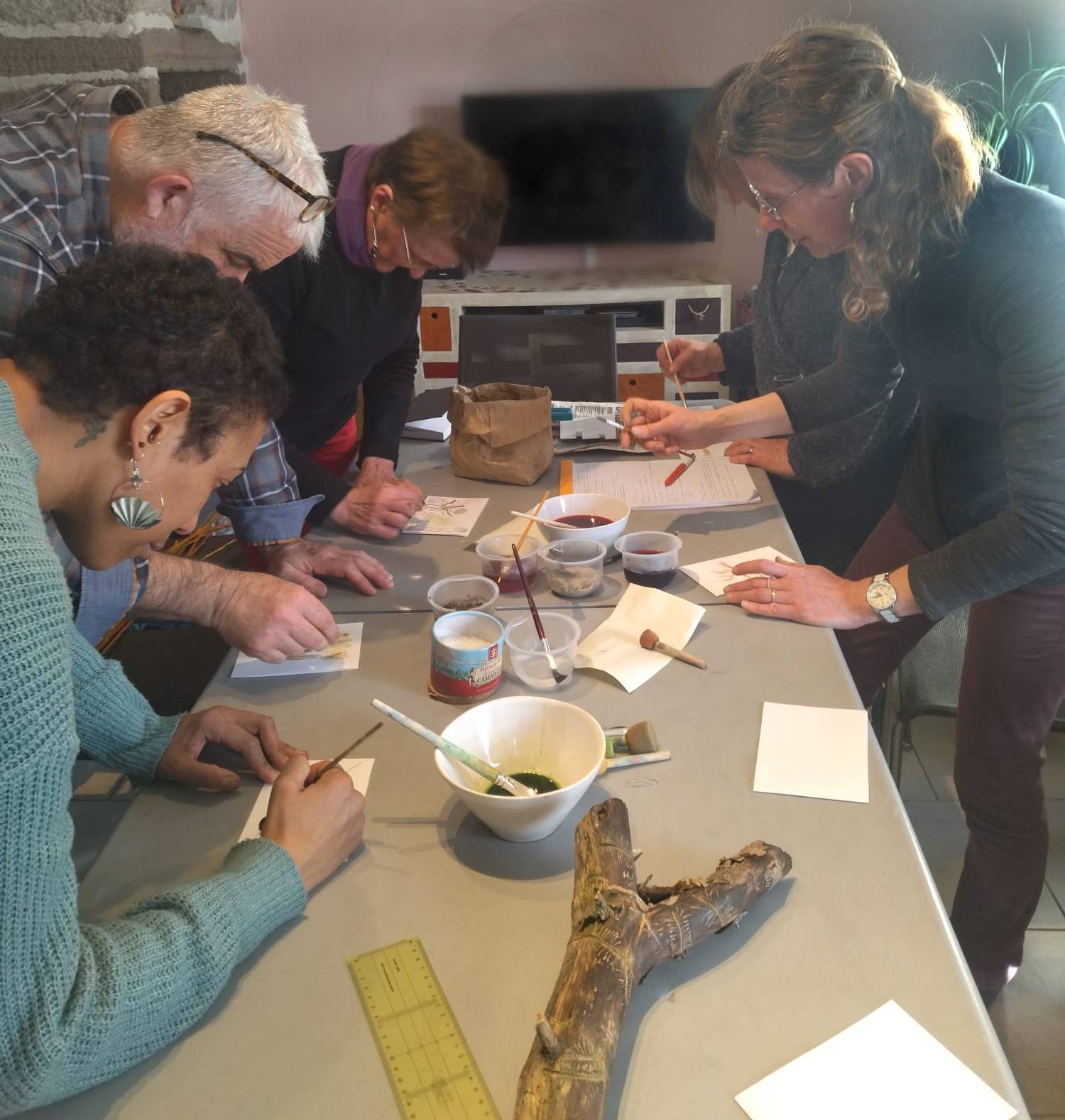 Le second temps avait lieu à Vazeilles-Limandre le 6 mars. Là encore, la neige avait décidé de perturber un peu le programme...Néanmoins, les activités dehors ont pu être maintenues. Sept enseignants ont passé la matinée en forêt pour apprendre à utiliser un outil d'aide à la détermination des arbres et empreintes, rechercher les traces laissées par les animaux dans les arbres, créer des sudokus végétaux. Ils ont ensuite pu s'essayer à la bouture d'arbustes grâce aux conseils du pépiniériste de la commune qui s'est fait un plaisir de partager ses connaissances et son savoir-faire. L'après-midi était focalisée sur le jardinage, toujours en lien avec les activités "intérieures". Après avoir testé la construction d'une lasagne végétale, les enseignants ont préparé des peintures végétales puis fabriqué de petits carnets. D'autres activités sur les insectes du jardin et les graines ont aussi été montrées. Compte-rendu de la journée du 06/03 (pour les documents complémentaires cités, contactez l'OCCE 43)