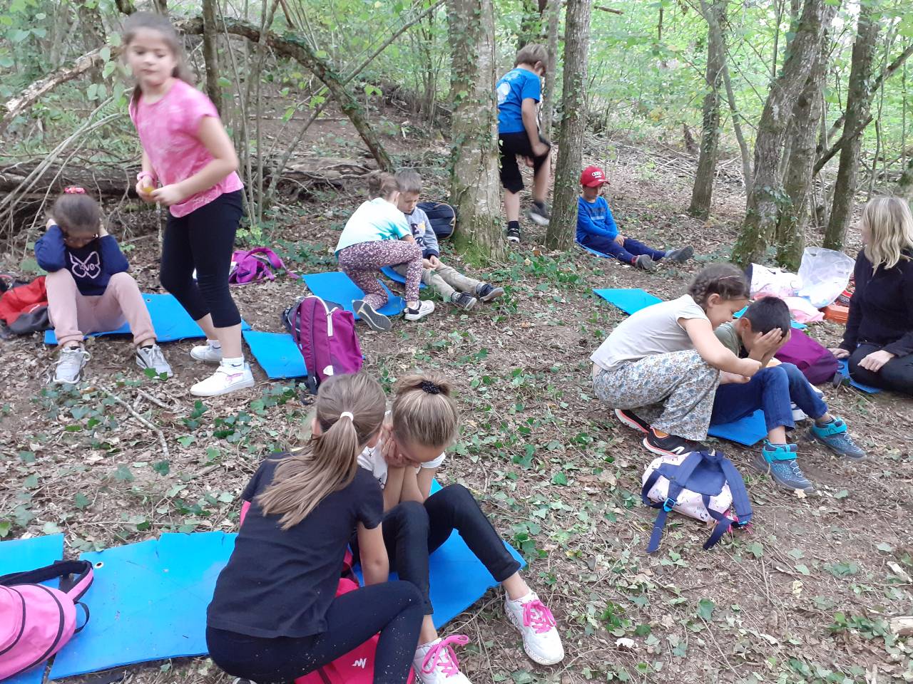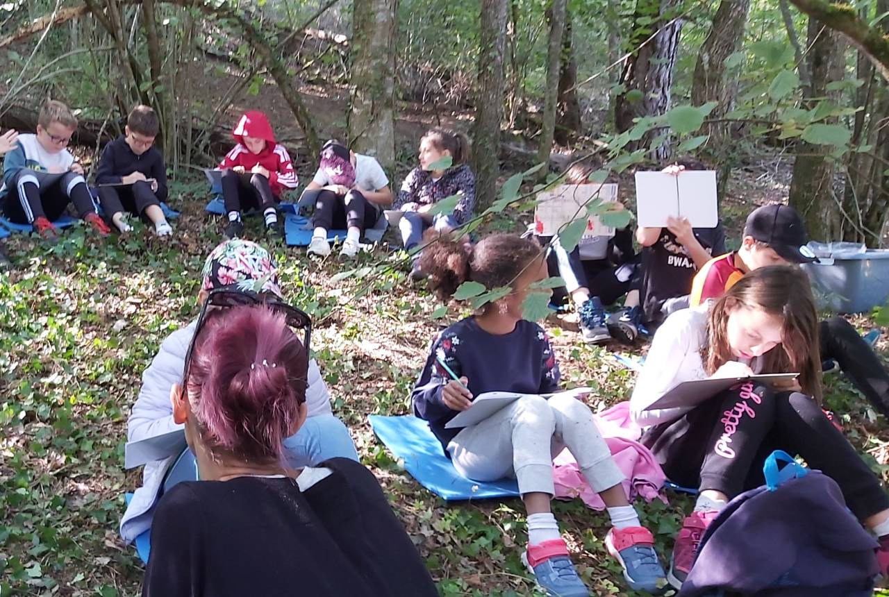 Le comportement des élèves est différent également et on ne sait pas à l’avance comment ils vont réagir : certains restent craintifs car il y a des « petites bêtes », des ronces ou des branches qui accrochent , d’autres imaginent qu’ils sont en totale liberté et peuvent en profiter pour tester les limites, d’autres se détendent et s’apaisent au contact du vivant, heureux de pouvoir toucher, sentir, s’allonger, s’adosser, d’autres encore révèlent une curiosité et des connaissances surprenantes et posent mille questions.