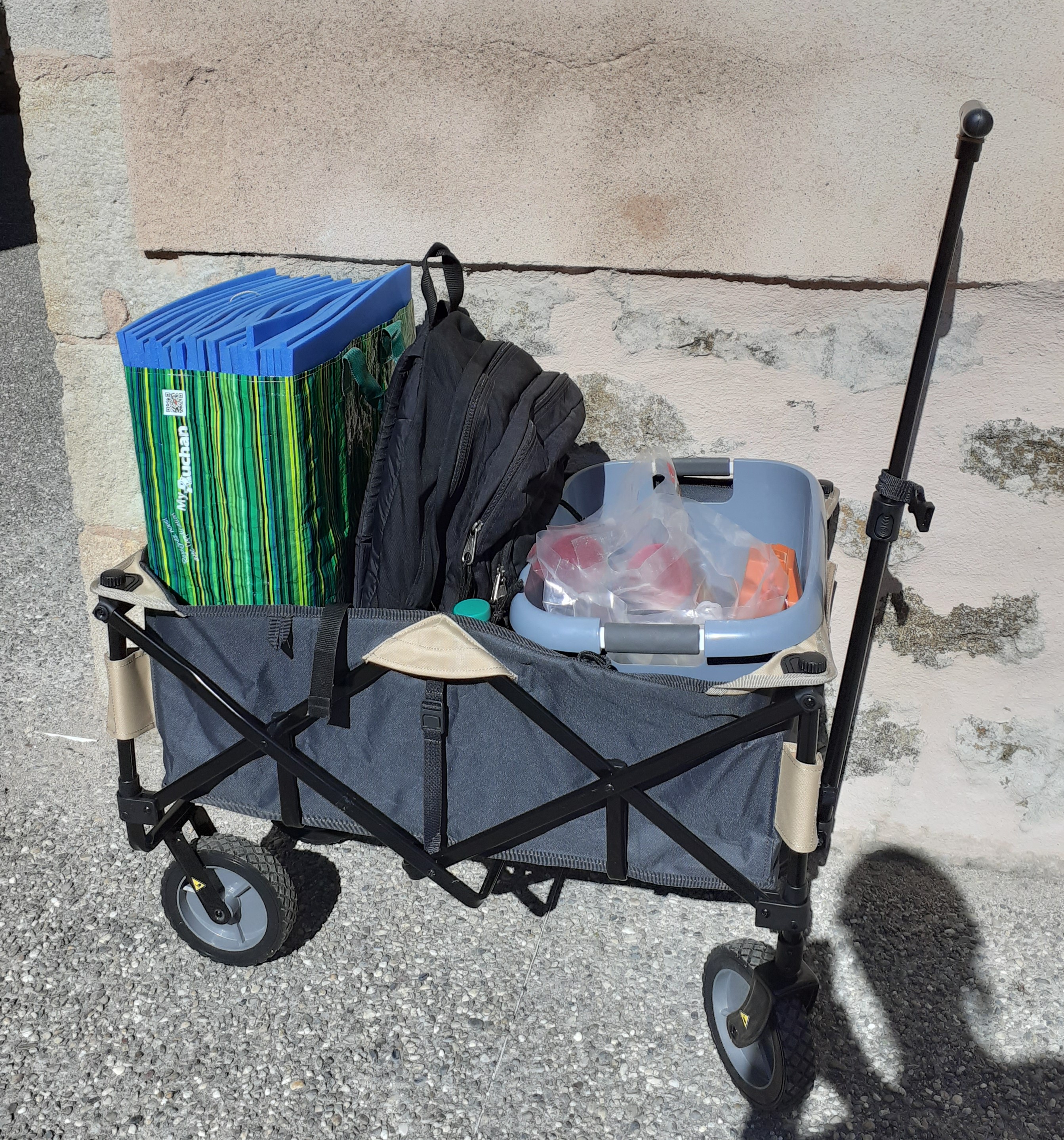 L’équipe, avec l’aide de l’animatrice OCCE, a alors commencé à réfléchir à l’organisation de la classe dehors : visite des lieux pour définir le périmètre et l’espace de regroupement (et le coin toilette!), préparation de la réunion de parents et du planning des accompagnateurs, matériel à faire suivre, etc...Une charrette contenant des tapis individuels, une bâche sur mesure pour abriter le coin regroupement, la trousse de secours, de l’eau, une boisson chaude à partager et le matériel pédagogique de la séance a ainsi été achetée avec la coopérative scolaire. Le rythme a été défini : 1/2 journée chaque semaine pour les maternelles, et 1/2 journée une semaine sur deux pour les deux classes élémentaires, en alternance. Tout était fin près pour démarrer fin septembre.